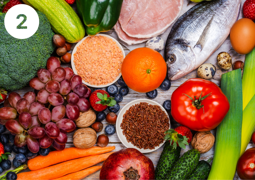 This eating pattern promotes the inclusion of a variety of foods from different food groups to achieve a balanced diet. However, a calorie-controlled healthy eating approach is needed to create a negative calorie deficit (600kcal/d) between energy intake and energy expenditure, for gradual and sustainable weight loss outcomes.